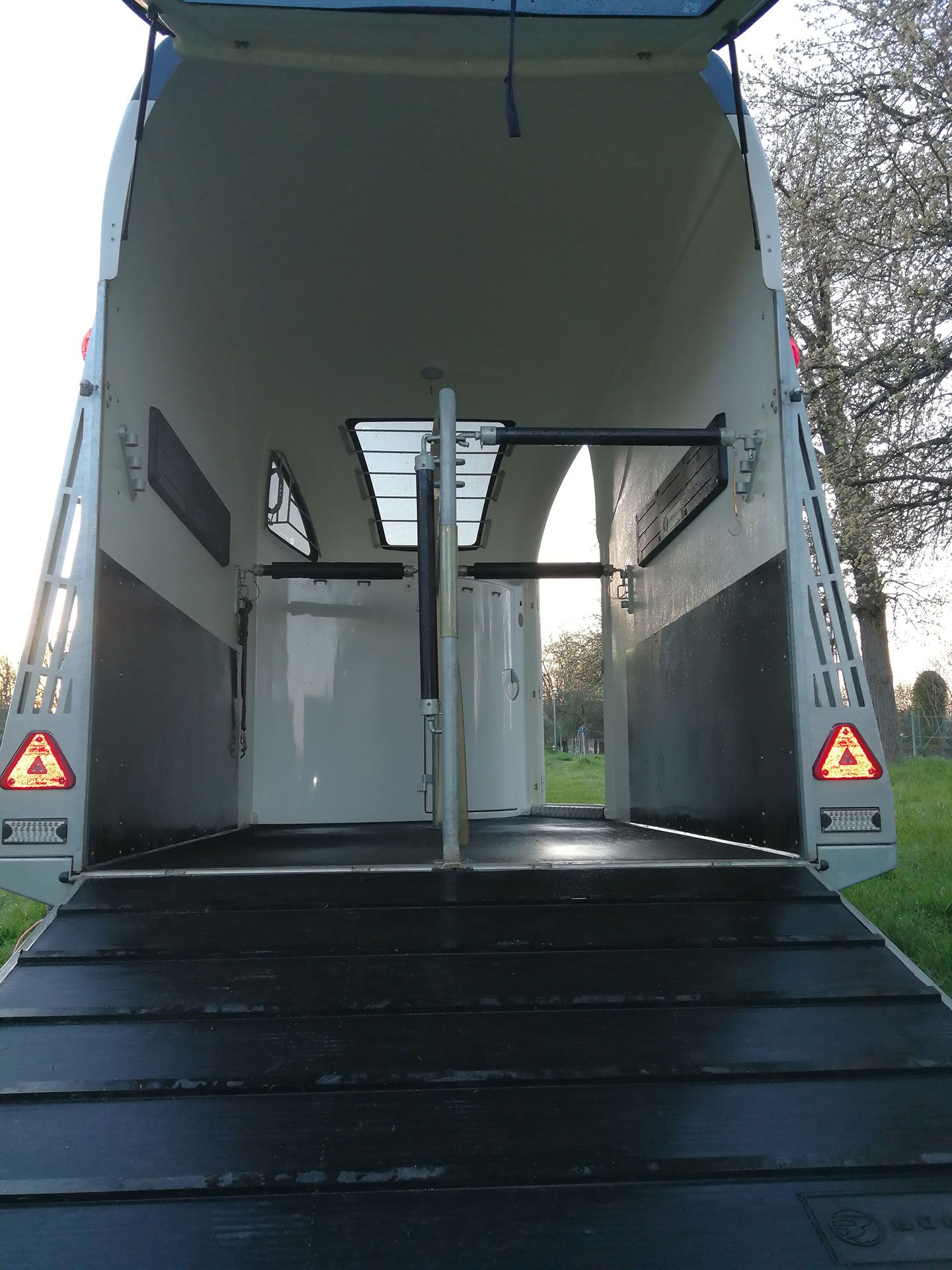 Sollte Ihr Pferd sich im Hänger unwohl fühlen kann der Besitzer sich gerne dazu gesellen und das Pferd währenddessen auch füttern.
